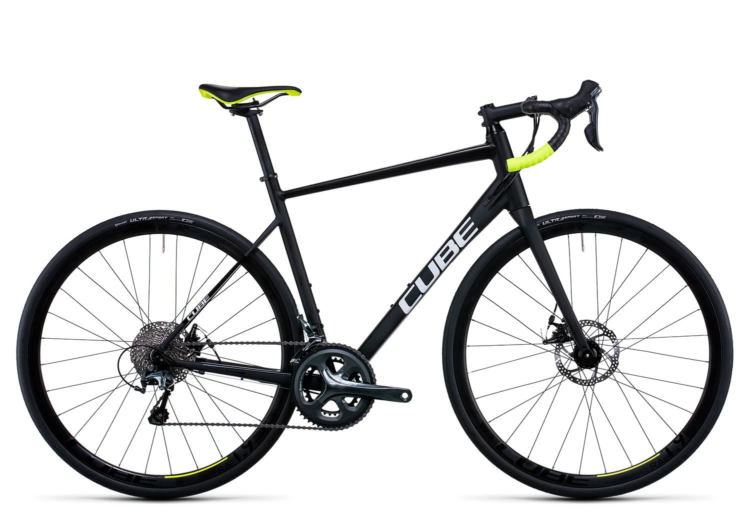 Die schnelle RACE Version des Cube Attain Straßenrennrades überzeugt mit einer kompletten Shimano Tiagra 20-Gang Schaltung sowie einer TRP Spyre Flat Mount Scheibenbremsanlage.